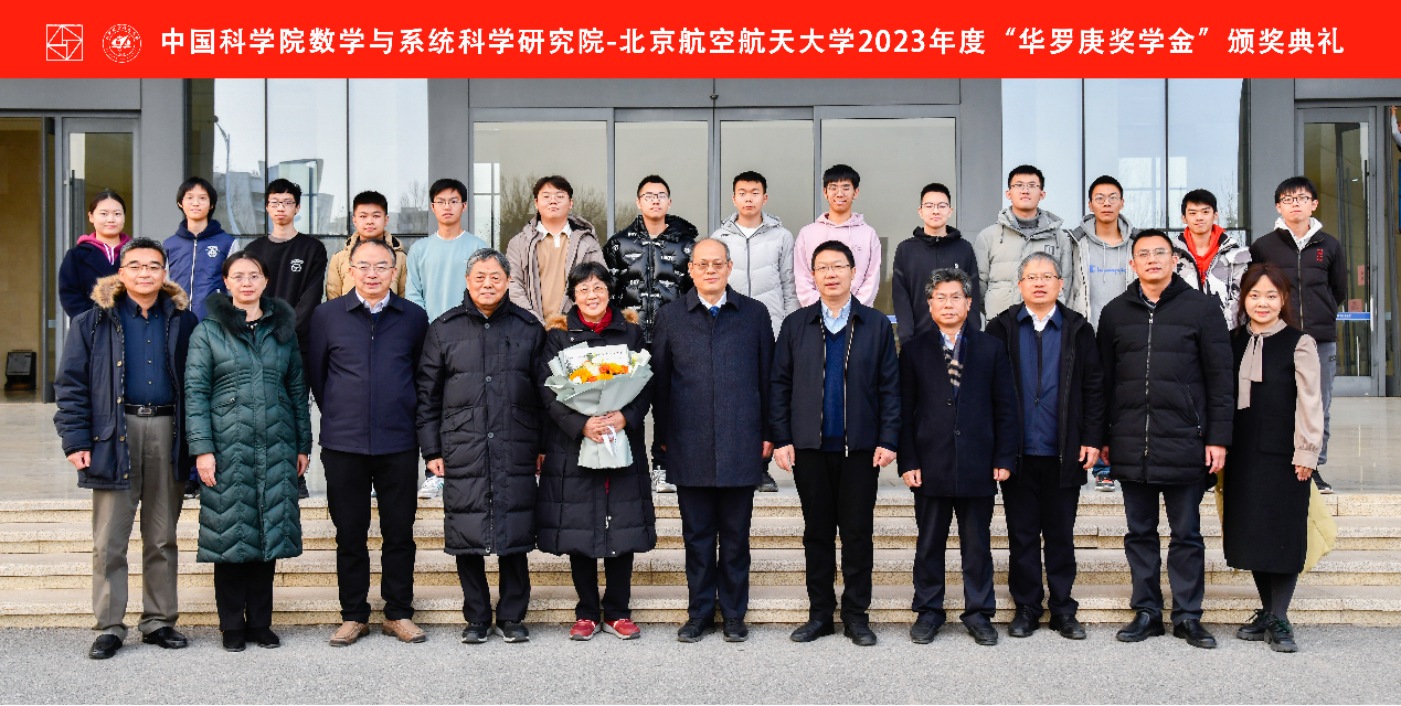 华密、张平、戴彧虹、吕卫锋、曹庆华为2023年度“华罗庚奖学金”获奖学生代表颁奖。“华罗庚奖学金”以中国现代数学之父——华罗庚先生命名,是中国科学院数学与系统科学研究院为激励华罗庚班学子而专门设立的奖项,也是数学专业本科生的最高荣誉。2021级华罗庚班学生王子航作为获奖学生代表在典礼上发言,表达投身基础研究、矢志空天报国的决心。