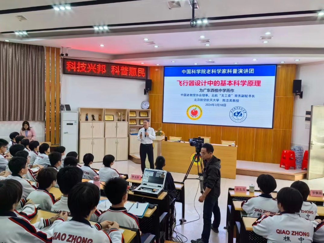 为弘扬以“空天报国”为内核的北航精神,点燃中小学生的空天梦想,3月18日至22日,作为中国科学院老科学家科普演讲团成员,陈志英教授来到广东,为石门中学、国华纪念中学、顺德一中等10所中小学主讲10场航空科普系列讲座,引领学生们踏上了一场引人入胜的科学之旅。