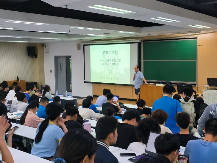 为引导学生立体感受数学之美,5月22日下午,数学科学学院“透视与射影——几何学帮你欣赏诗和远方的风景”讲座在沙河校区j3-107顺利举行。本次讲座由北京大学数学科学学院教授马翔主讲,学院党委副书记魏茜主持,来自全校各学院200余名学生参加。