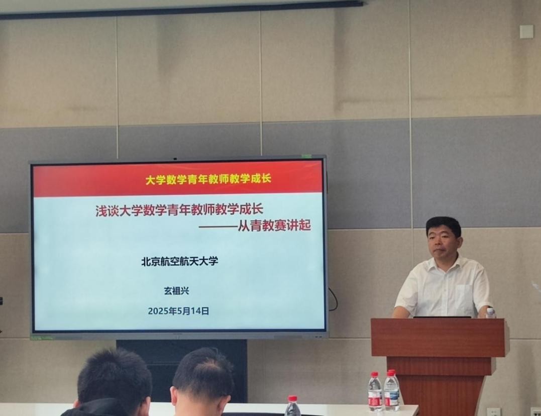 为提升高校青年教师教学能力,促进教学经验交流,5月14日下午,数学科学学院联合教师发展中心于沙河主楼E806举办“浅谈大学数学青年教师教学成长——从青教赛讲起”专题讲座。本次讲座由数学科学学院薛玉梅教授主持,特邀北京联合大学教授玄祖兴担任主讲嘉宾。