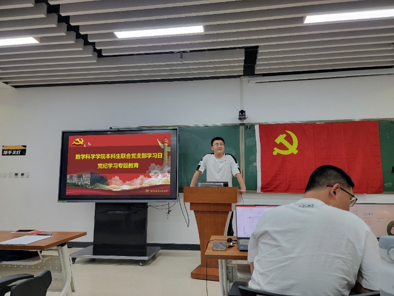 为扎实推进党纪学习教育,强化底线思维,5月26日晚上,数学科学学院本科生联合党支部“学党纪 明红线”主题学习日于沙河主楼E404举行。本科生联合党支部全体党员、预备党员、部分入党积极分子等40余人参与学习。本次学习日由支部书记李非主持。